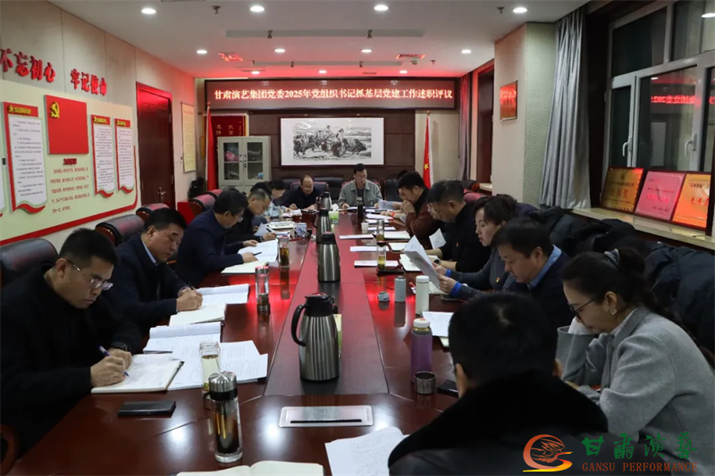 2026年1月5日,甘肃演艺集团党委召开2025年度各直属党总支(支部)书记抓基层党建工作述职评议会议。集团党委书记、董事长陈其银主持会议,并对现场述职情况作整体点评。集团党委副书记、总经理杨焱,党委副书记、工会主席张国伟,党委委员、纪委书记庞一龙出席会议,并对大会现场述职的四个党总支(支部)书记逐一进行点评。集团党委委员、副总经理、艺术总监刘宁,党委委员、副总经理刘顺芳及党委工作部门负责人参加会议。
