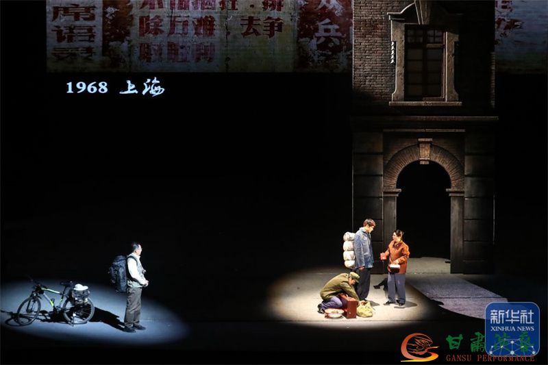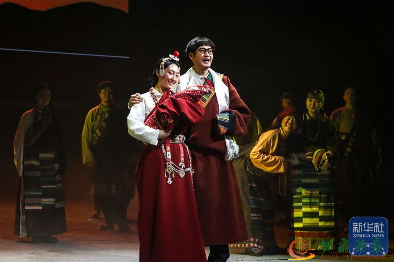 ↑ 1月28日晚,在甘肃黄河剧院,甘肃省话剧院演员在话剧《青青的阿万仓》中表演。