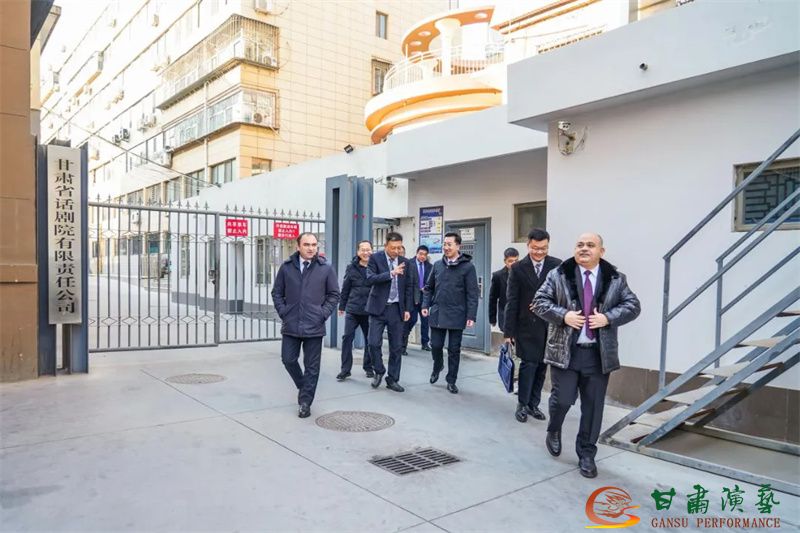 代表团一行参观了具有72年历史沿革、艺术底蕴深厚的甘肃省话剧院以及附属人民剧院、甘话60剧场等演出场所。其间,正值儿童剧《阿拉丁与神灯》排练,代表团一行饶有兴致地观看了“甘话”演员们的表演,沉浸式地感受到了甘肃戏剧扎根华夏热土的鲜明特色与时代艺术氛围,对甘肃省话剧院创排的经典剧目赞不绝口,不时与陪同人员交流探讨,就双方戏剧艺术的共通共鸣、同频共振之处展开热烈互动。