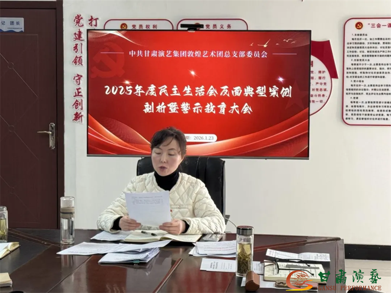为深入学习贯彻习近平新时代中国特色社会主义思想,落实集团党委关于2025年度民主生活会相关要求,1月23日,甘肃演艺集团敦煌艺术团党总支召开第一次理论学习会议暨民主生活会会前专题学习会。党总支书记、团长许蕊主持会议并作总结讲话,领导班子成员、各党支部书记及部分党员参加学习。