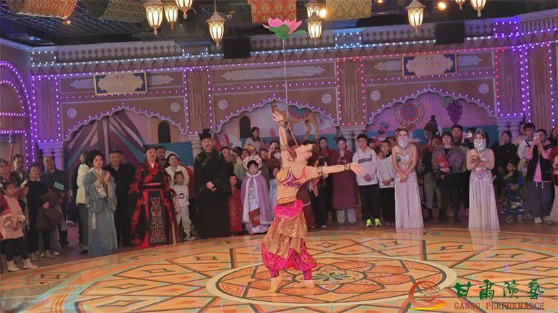 穿越玉门关,黄河渡区域的《悬泉置》情景剧,更是将丝路传说与历史故事完美呈现,让围观的游客仿佛穿越到那个两千多年前的汉朝边陲;西域场景里,热情奔放的波斯舞轮番上演,舞者们踏着欢快的节奏旋转起舞,现场氛围热情高涨;妙趣横生的魔术表演与惊险刺激的杂技表演让观众目不暇接,一个个精彩的节目生动演绎了丝路市集的热闹景象。