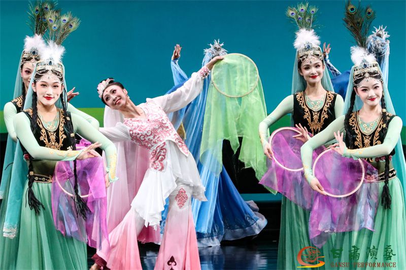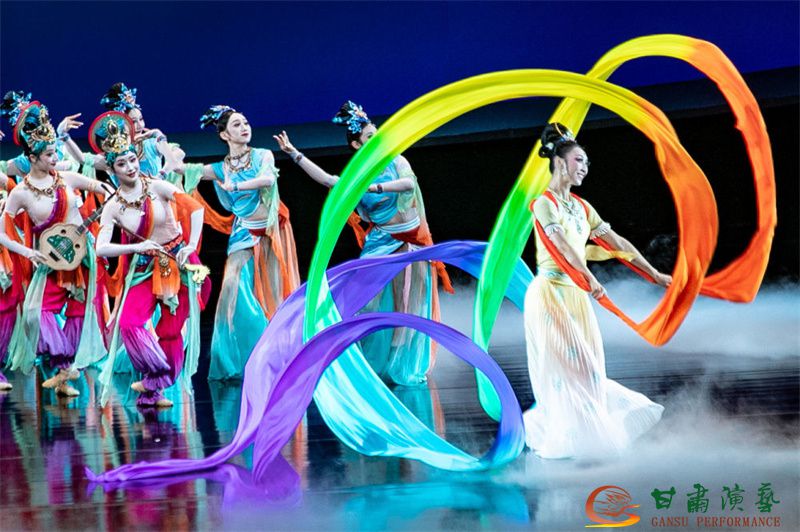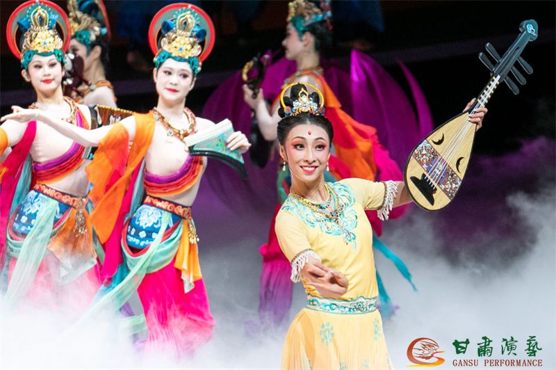 ↑ 8月28日晚,演员在甘肃大剧院表演2025年新版《丝路花雨》。