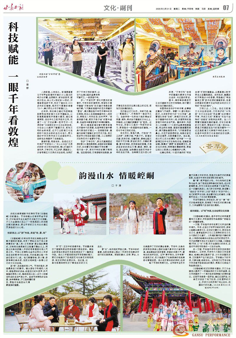 近年来,相关单位通过科技赋能拓宽和延伸敦煌文化的传播路径,以敦煌莫高窟现存洞窟为基底,通过洞窟再现、活态转化及数字技术应用,构建了一处“历史叙事—数字艺术—沉浸场域”三维联动的文化体验新空间,为社会公众提供了触摸历史、感知文明的全新维度,这不仅让敦煌文化在新时代焕发出新的生机与活力,更为推动中华优秀传统文化创造性转化、创新性发展提供了实践路径。