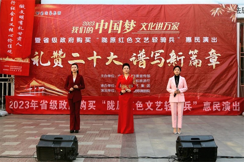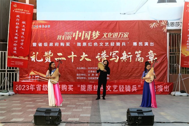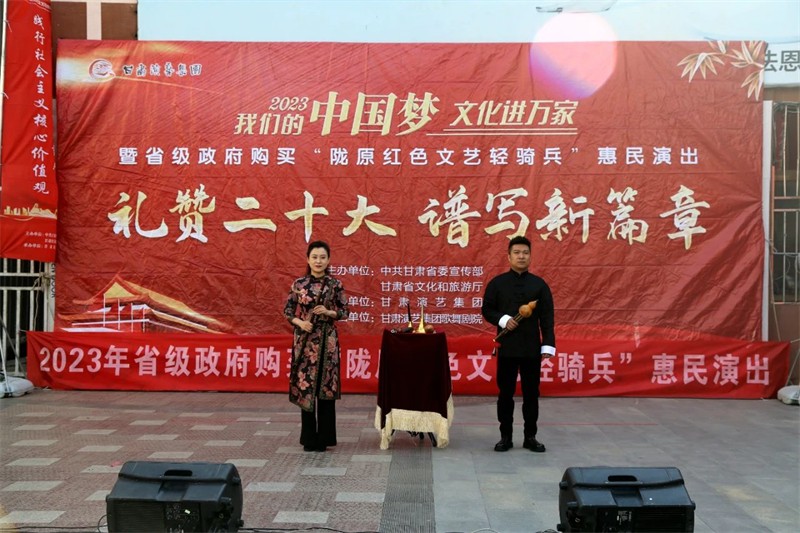 好戏送到家门口,文化惠民暖人心。10月15日,由甘肃省委宣传部、甘肃省文化和旅游厅主办,甘肃演艺集团承办的2023年“我们的中国梦”文化进万家暨陇原红色文艺轻骑兵惠民演出精彩继续,甘肃演艺集团歌舞剧院一天内分别在兰州市城关区东岗西路兰海商贸城小广场、易大天地,将两场精彩的演出送给了市民朋友。