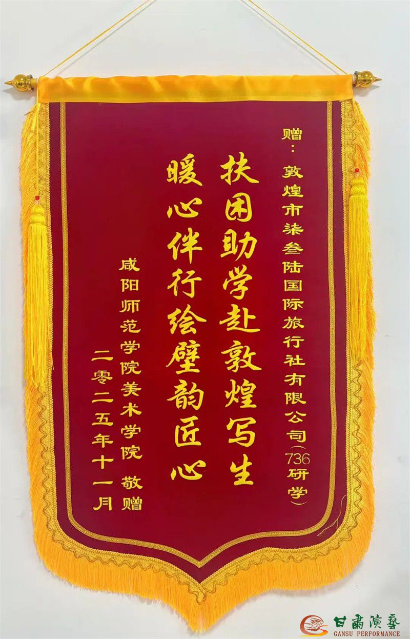 近日,敦煌市柒叁陆国际旅行社有限公司收到一封来自咸阳师范学院美术专业学生的感谢信。信中,受助学子真挚讲述了在敦煌写生期间获得的资助与关怀,深情致谢公司为其铺就的这场圆梦之旅。纸短情长,字字滚烫,这既是对企业公益善举的肯定,更是一份沉甸甸的文化传承责任。未来,公司将持续设立专项大学生实践教学公益基金,为更多青年学子提供系统性公益性补助,助力他们跨越山海,亲近敦煌,研习国粹。
