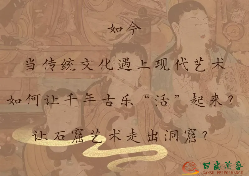 张华:敦煌莫高窟本身就是石窟艺术的集大成者,壁画、藻井、彩塑无不自带沉浸式的特质,而当时市场上流行的沉浸式艺术形式,恰好与这种石窟艺术的内核高度契合。这种形式与内容的天然契合,让我们团队看到了创新的可能。在剧目名称的打磨上,我们追求直接且富有深意的传达力:“乐”不仅指代敦煌古乐相关的一切,更承载着千年音乐文化的传承;“动”则兼具双重寓意,既指观众在剧场内的流动观演,也期盼这份穿越千年的音乐能打动人心,引发情感共鸣。最终,《敦煌音画》正式更名为《乐动敦煌》,一个“动”字,既贴合了沉浸式的表演形式,也藏着我们对剧目传播效果的深切期许。
