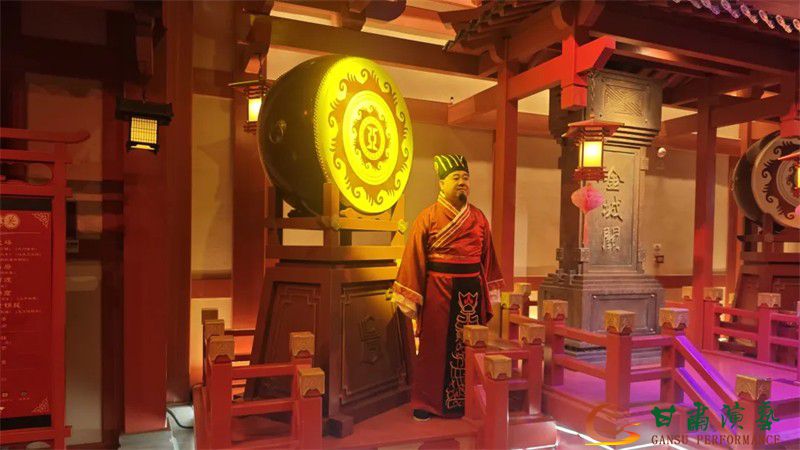 演武场内,舞蹈演员身姿翩跹,以柔美婉约的舞姿勾勒出汉代宫廷的盛景,衣袂翻飞间尽显古典之美。当解忧公主款款步入玉门关的经典场景上演时,厚重的城门闭合声让全场屏息凝神,演员们细腻地演绎,将这段历史故事娓娓道来,让观众仿佛置身千年前的丝路现场。