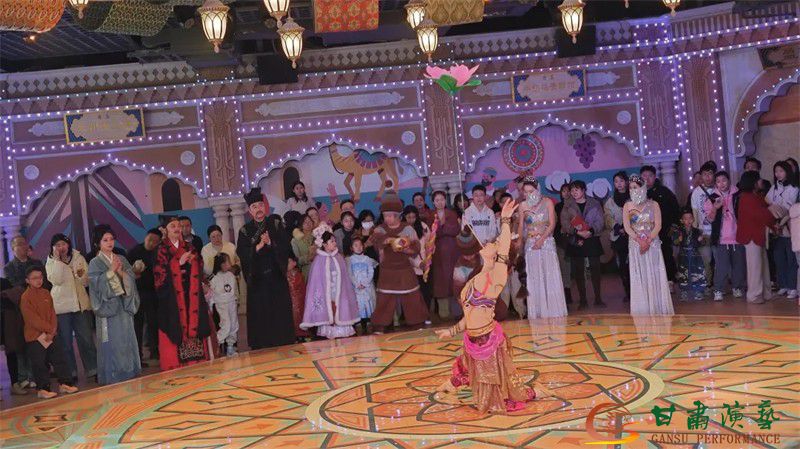穿越玉门关,黄河渡区域的《悬泉置》情景剧,更是将丝路传说与历史故事完美呈现,让围观的游客仿佛穿越到那个两千多年前的汉朝边陲;西域场景里,热情奔放的波斯舞轮番上演,舞者们踏着欢快的节奏旋转起舞,现场氛围热情高涨;妙趣横生的魔术表演与惊险刺激的杂技表演让观众目不暇接,一个个精彩的节目生动演绎了丝路市集的热闹景象。