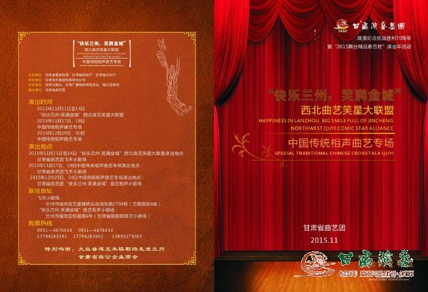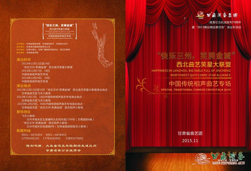 2. 2015年11月17日、18日中国传统相声曲艺专场演出地点:甘肃省曲艺团飞天小剧场