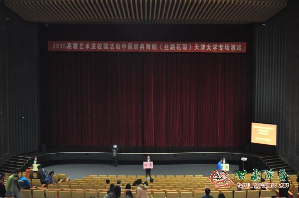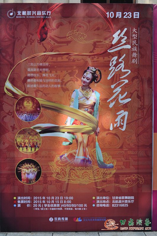 2015年10月19日-25日,甘肃省歌剧院携中国经典舞剧《丝路花雨》走进中国戏曲学院、北京物资学院、北京大学、北京航空航航天大学、天津大学等5所大学,为京、津两地高校送上了一场视觉盛宴,得到了广大师生的热烈的欢迎和一致好评!