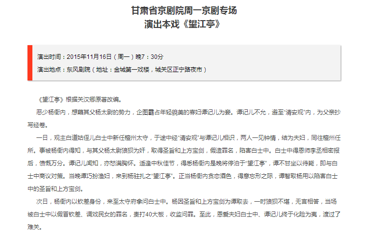 甘肃省京剧院周一京剧专场演出本戏《望江亭》