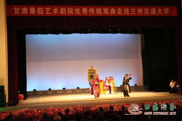 2015年9月22日晚7点半,由甘肃秦腔艺术剧院主办的“迎中秋,庆国庆”优秀传统戏曲进校园活动,第二场的演出在兰州交通大学剧场开演。作为中国汉族最古老的戏曲之一,也是我国优秀传统文化的代表之一,秦腔的传承和发展不仅牵动着无数陇原戏曲工作者的心绪,更是甘肃秦腔艺术剧院肩负的神圣使命。一场的演出中,该院的专业戏曲表演艺术家们粉墨登场,为到场的学子们倾情献上了《扈家庄》《时迁盗甲》《杀狗劝妻》《鬼 怨》《古城会》等5场精彩的秦腔折子戏,受到了观众的热烈欢迎。