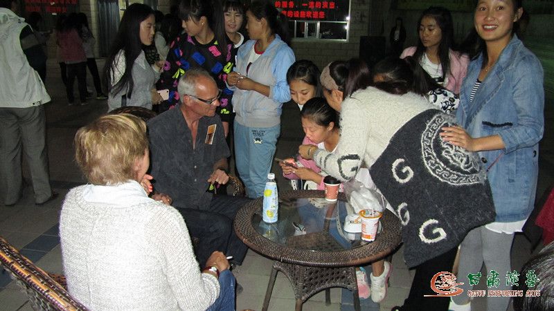 当晚,学生们早早的来到了敦煌大剧院,有秩序的排队入场,认真的观看了精彩的演出,还与外国游客交流观看感、跟演员合影留念。让他们度过了一个非常有意义的中秋节。