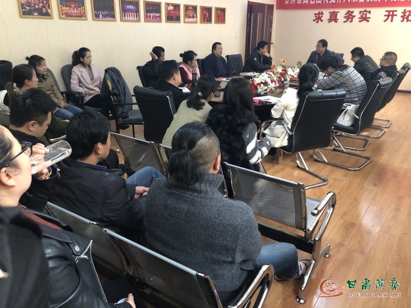 首先,重点贯彻落实好2019年度“陇原红色文艺轻骑兵”下乡镇巡演工作,积极对接地州市“美丽乡村旅游”演出平台。其次积极开展对接纪念改革开放40周年、庆祝建国70周年、敦煌行·丝绸之路国际旅游节各地区系列活动、中国·河西走廊有机葡萄美酒节、平凉崆峒养生文化旅游节等大型庆典节会演艺事宜。最后对2018年11月6日-9日,参加由省文联甘肃省曲艺家协会承办的“全省曲艺业务骨干研修班”的同志们提出具体培训要求,积极鼓励业务骨干立足岗位建功立业的热情,同时要求参加培训的艺术家们,认真学习业务知识,不断转化为新的业务成果,今后在国家艺术基金、敦煌文艺奖和中曲协、省曲协举办的各类评奖中取得优异成绩,向全国人民展示甘肃曲艺的魅力风采。(图文由甘肃省曲艺团提供)